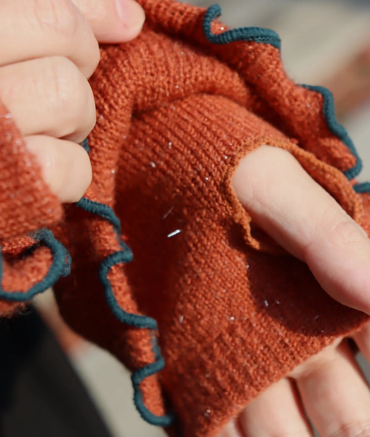 やわらかく光るラメ糸を織り込んで