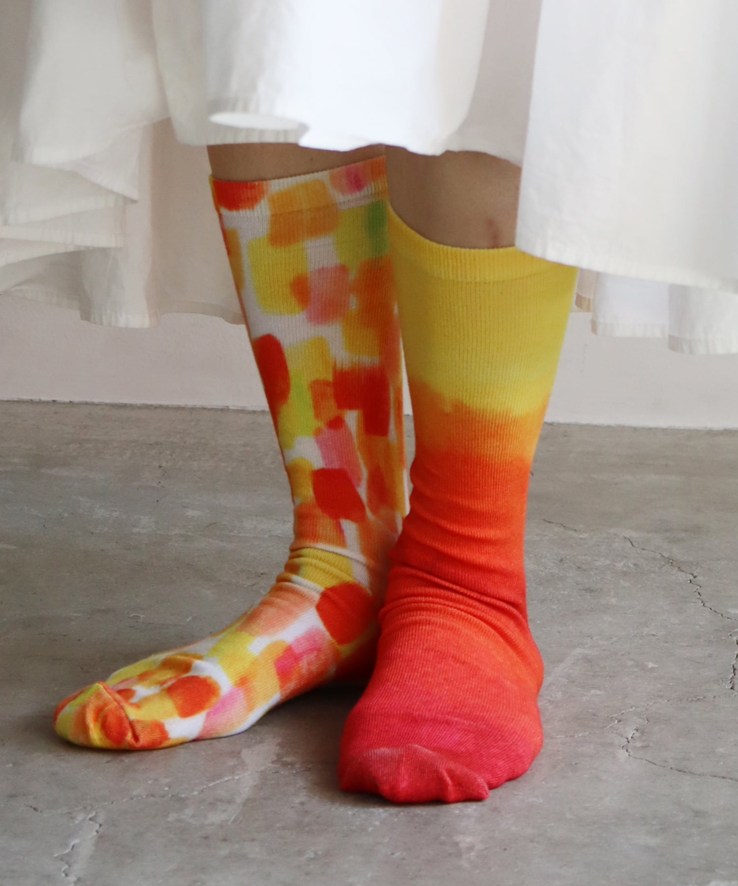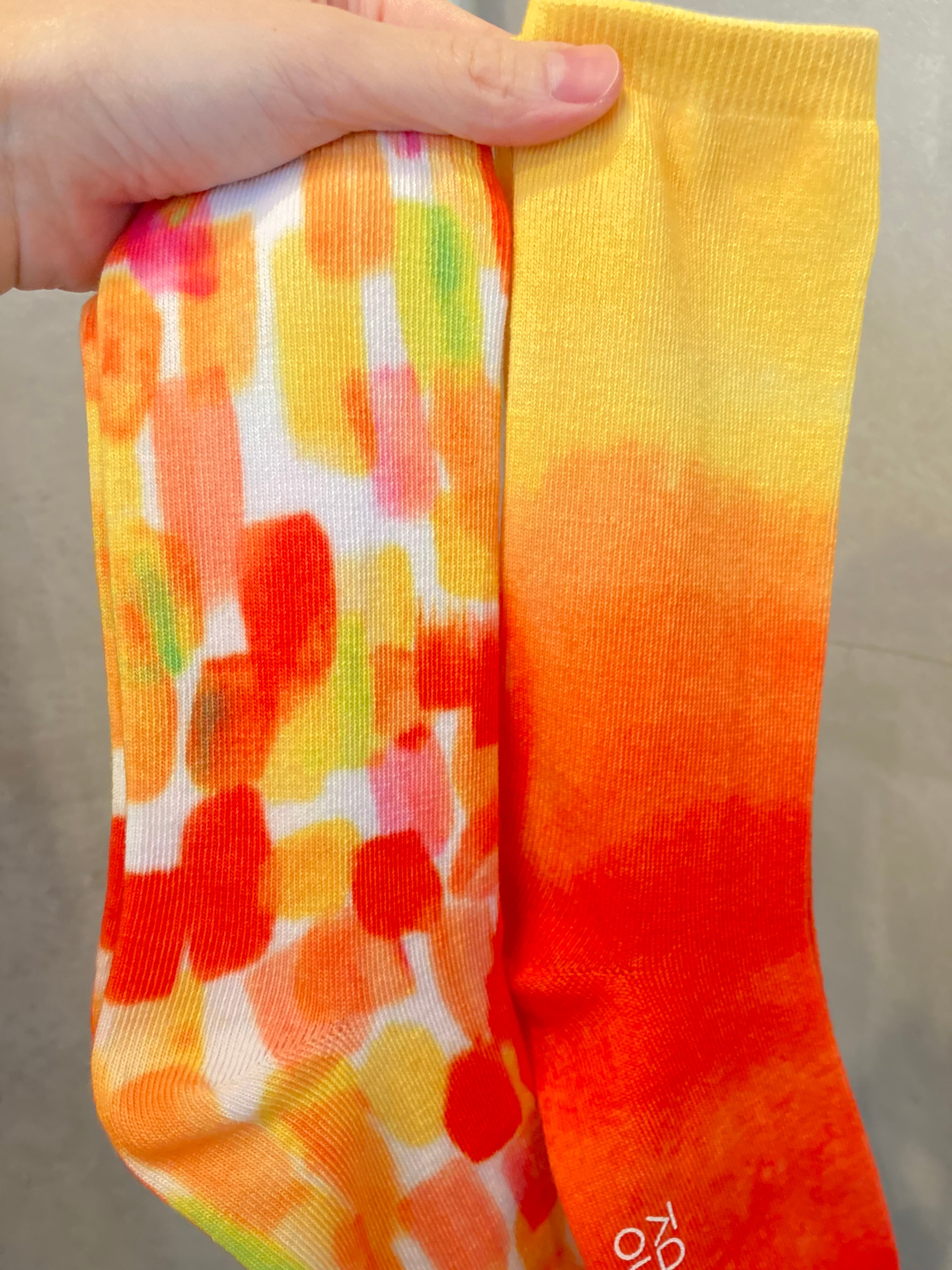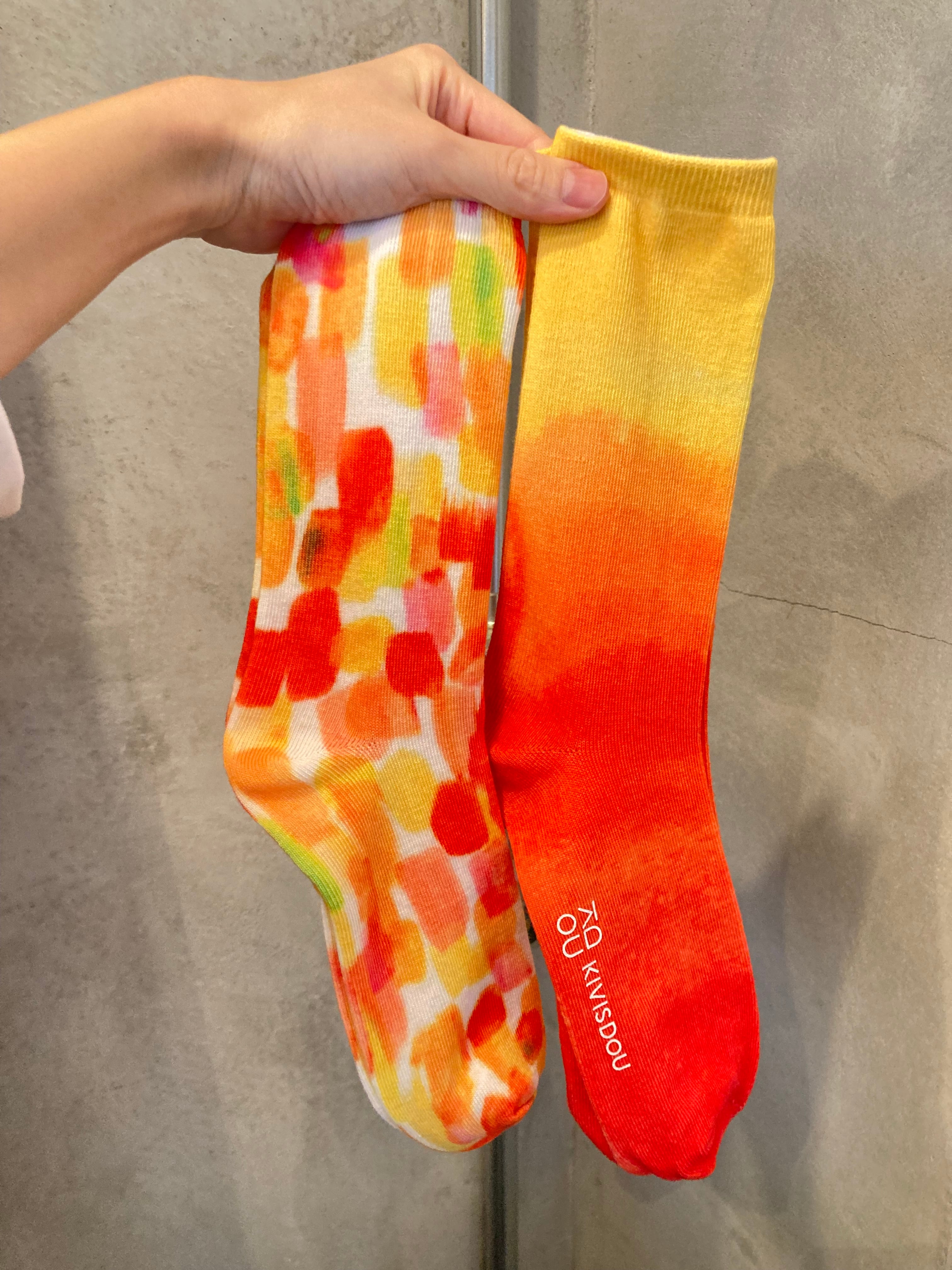 夕陽で染め上げたような、アートな総柄プリントソックス。