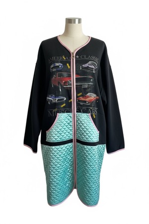 古着のスウェットをキルティングとドッキングした