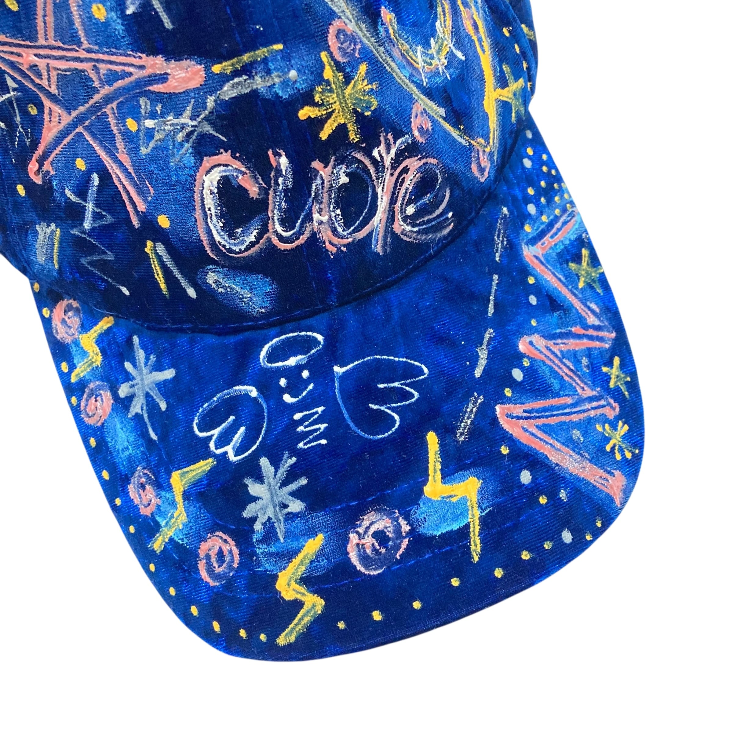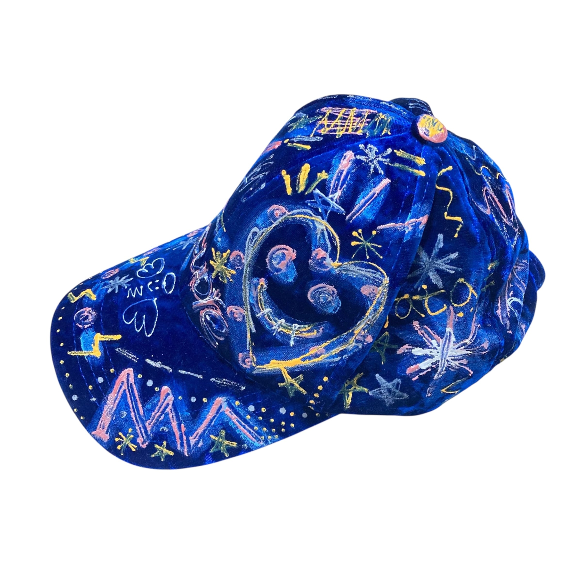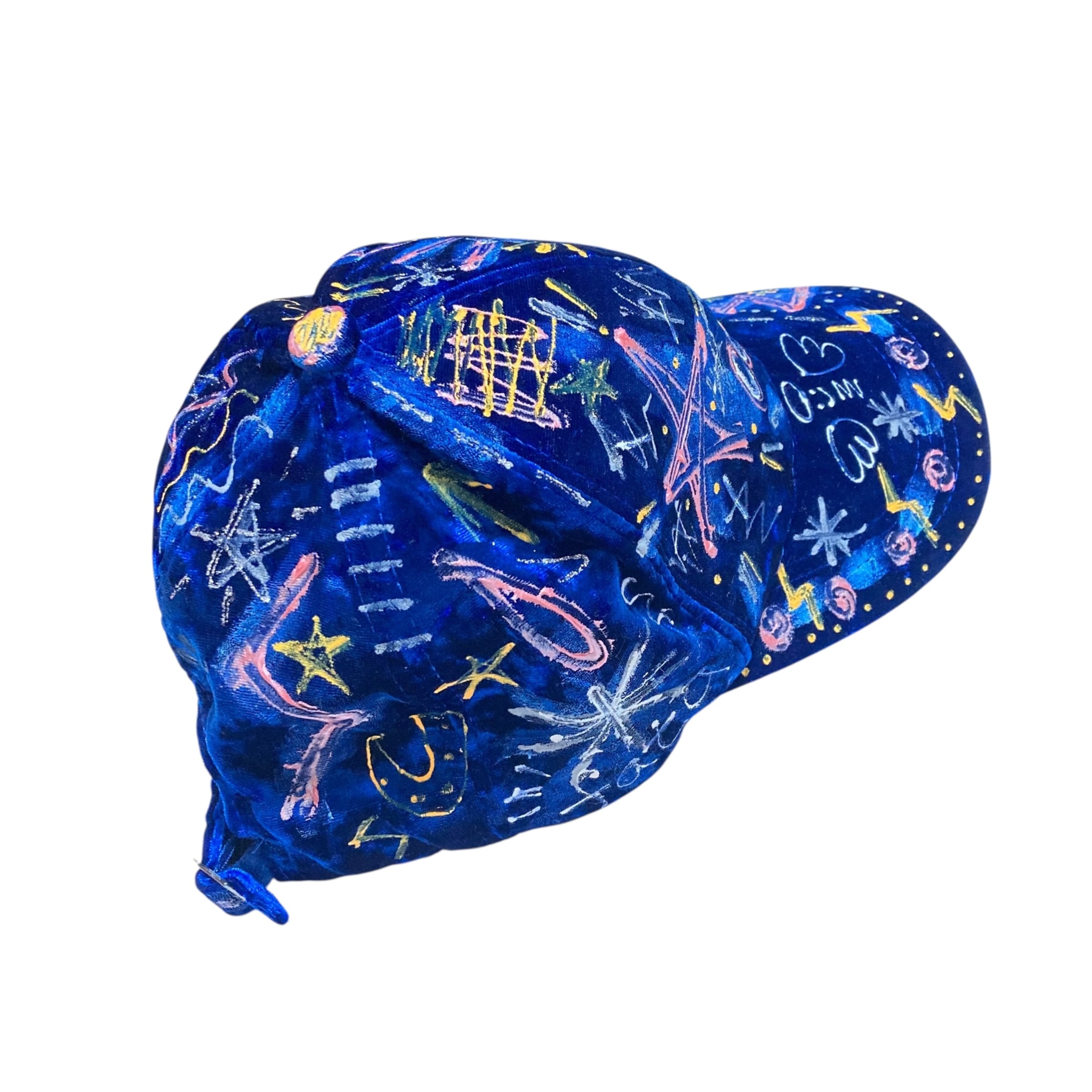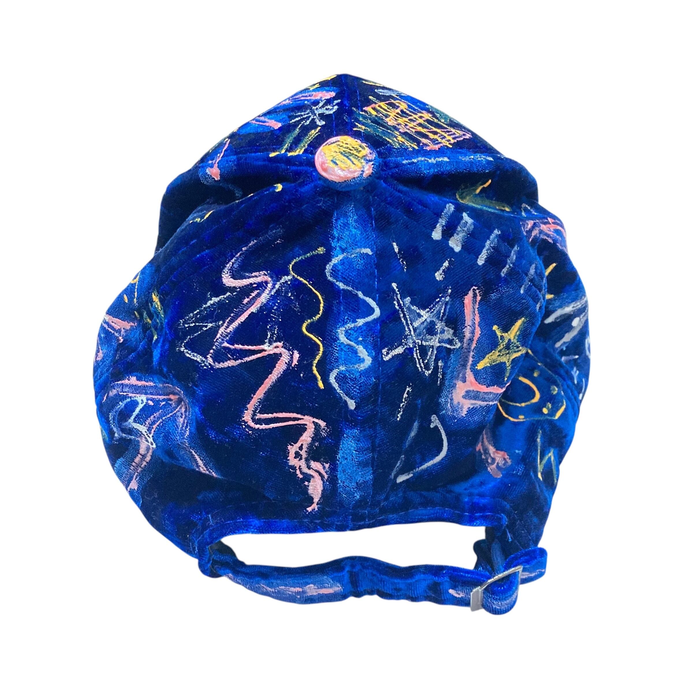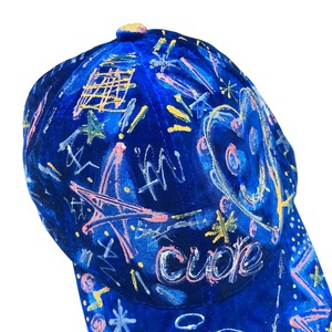 ベロアのような光沢がある深いブルーのベースのキャップに