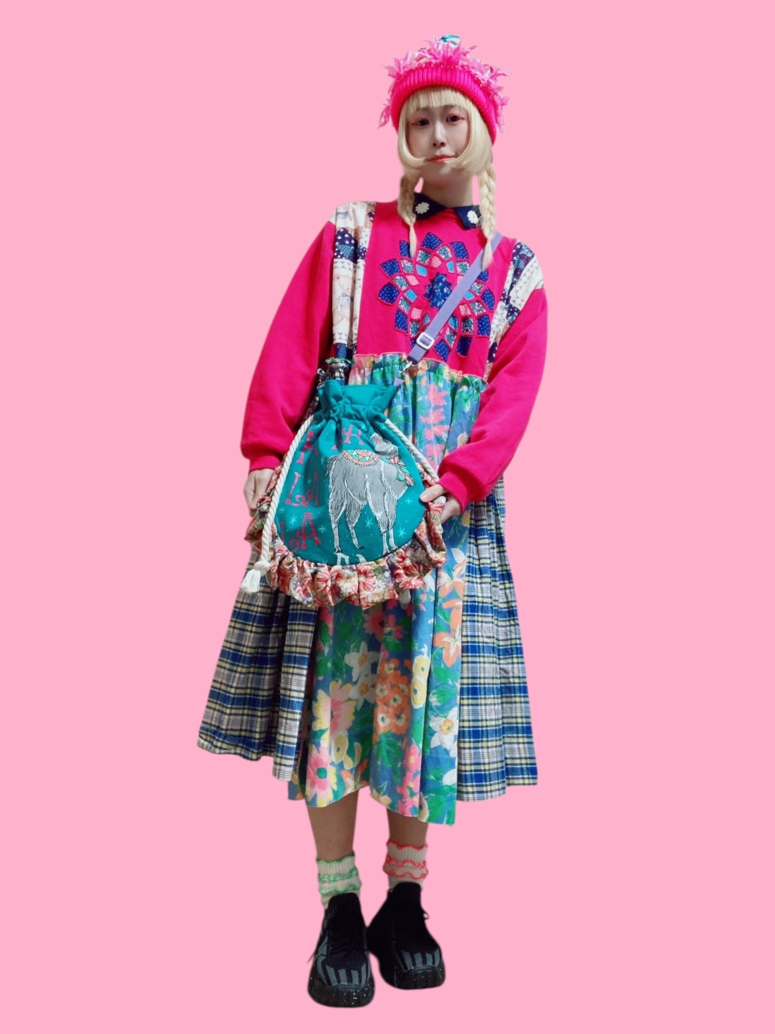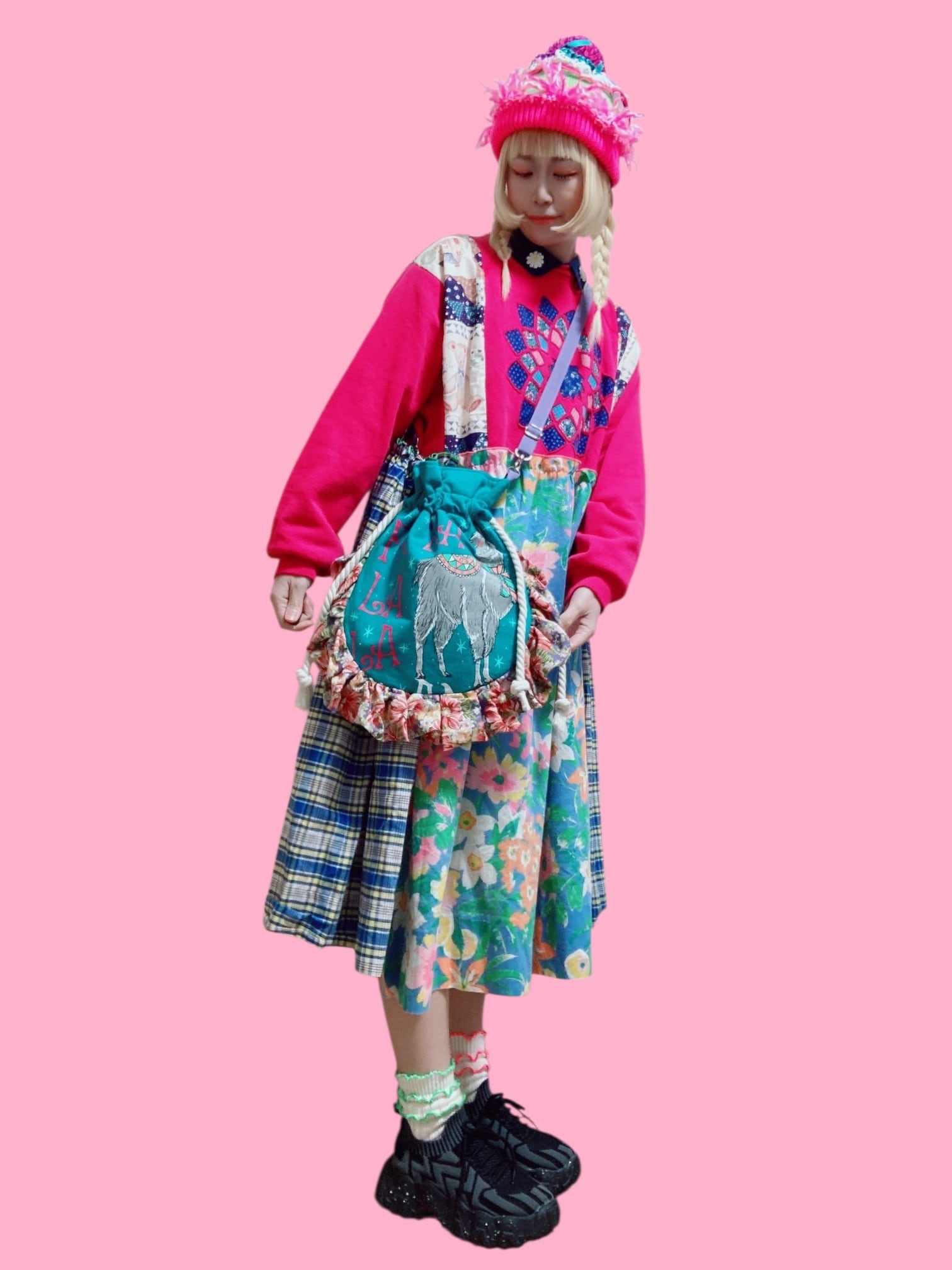 SHIROMAMEさんの古着リメイクショルダーバッグです❣️