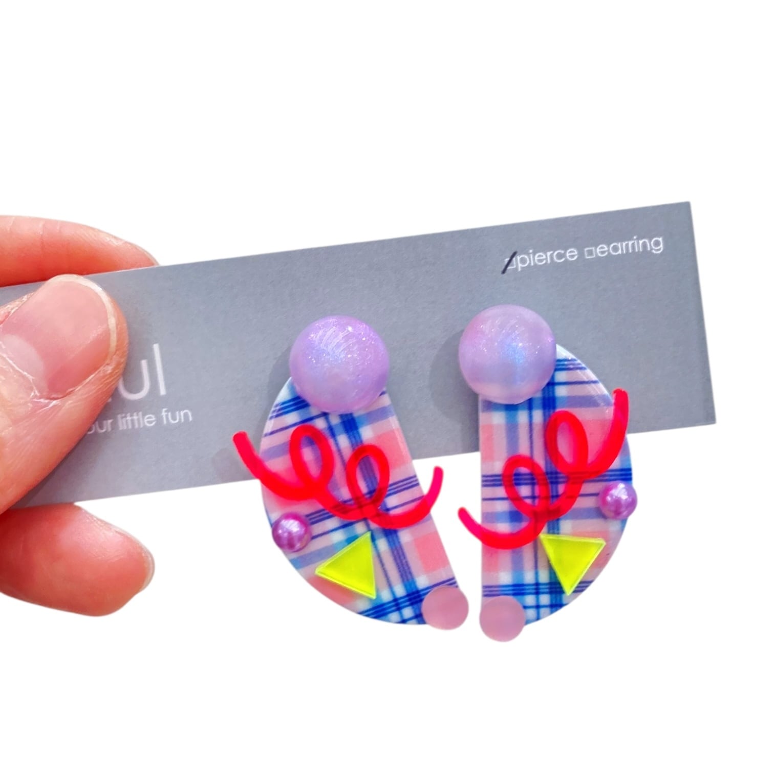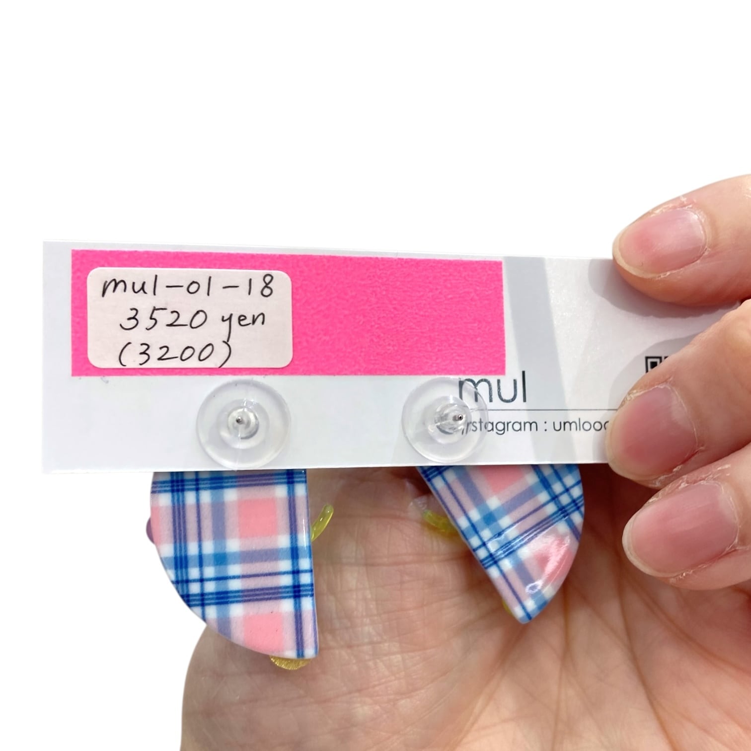 【1/18(日)21:00-1/21(水)12:00まで限定❣️】mul / pastel check half moonピアス