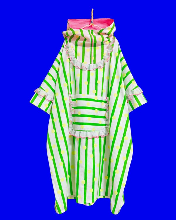 【1/31(土)21:00-2/8(日)23:59限定❣️】いろは洋品店 / ドット×ストライプ パーカーワンピース(キミドリ)