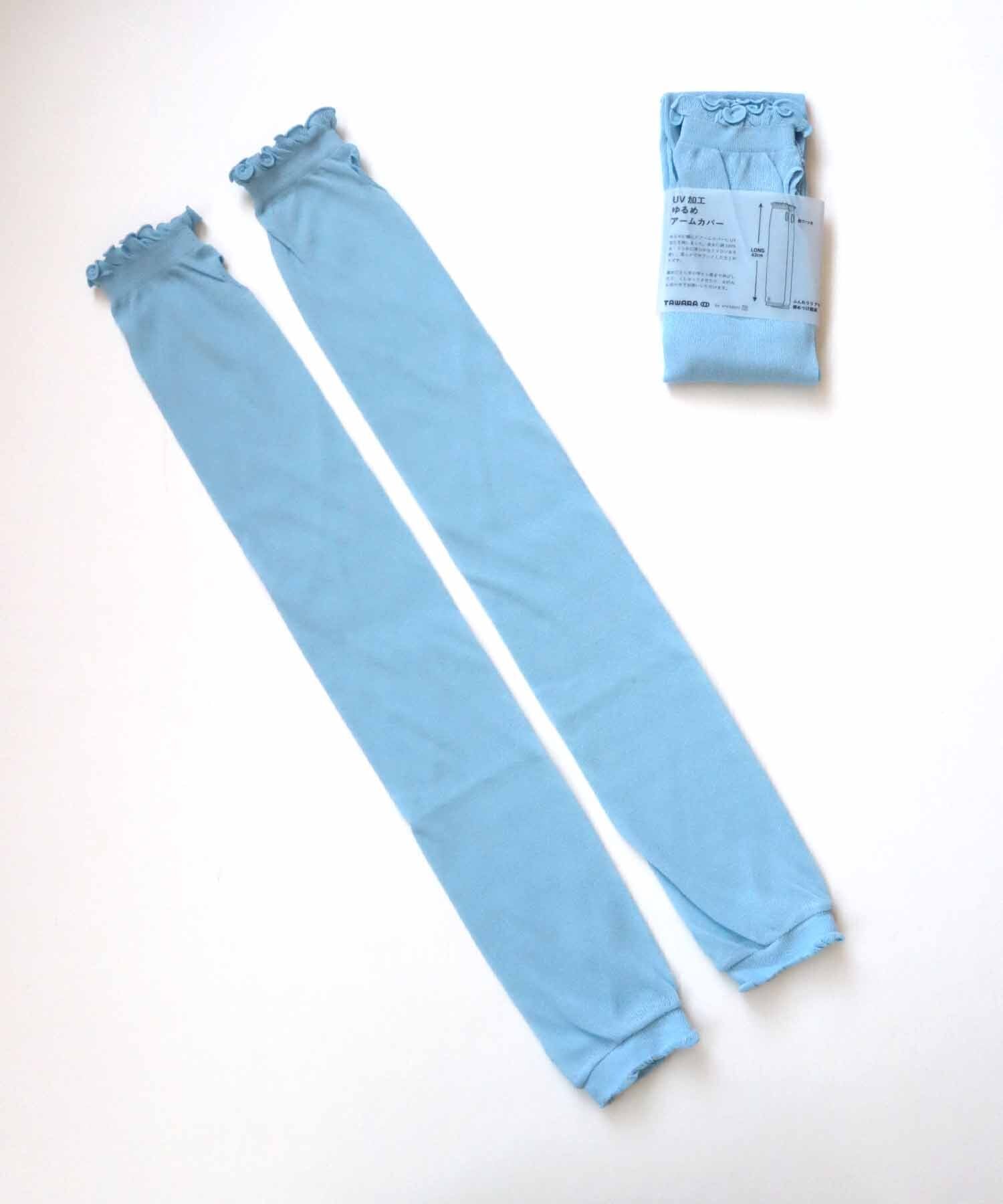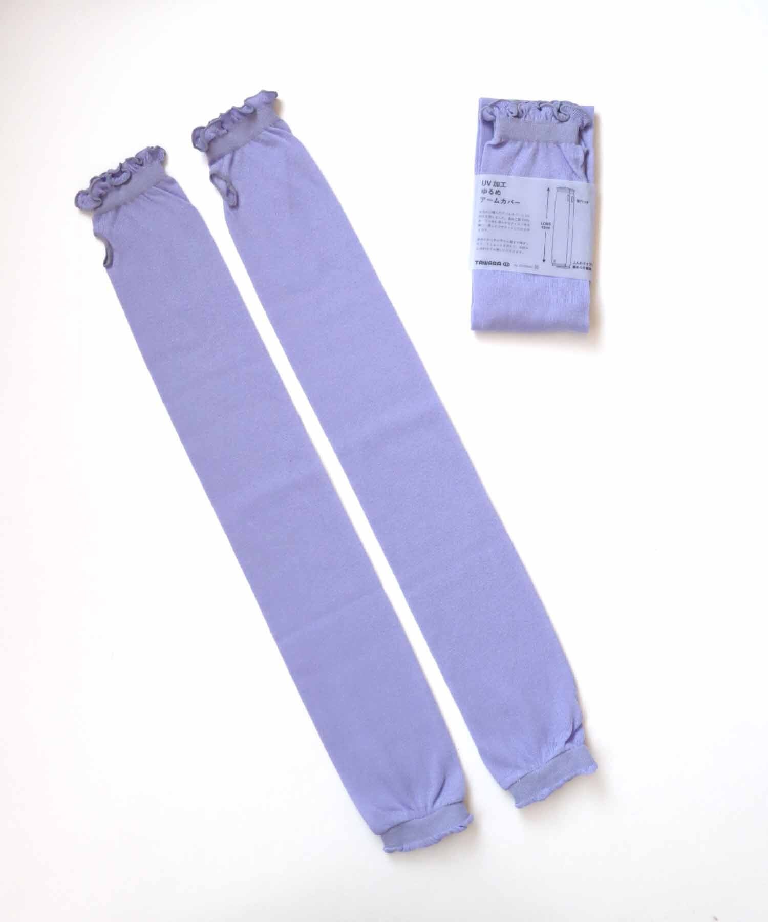 綿100%糸を使ってゆるめに編みたてた、長め仕上げのUV加工アームカバーです。
