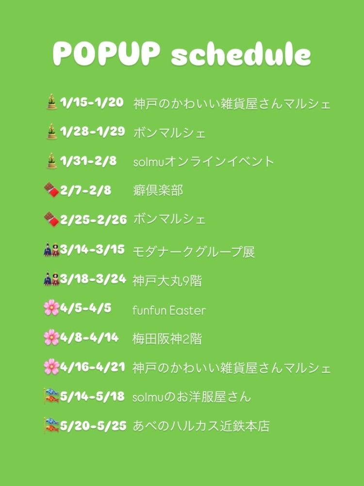 現在のイベント出店の予定となります。