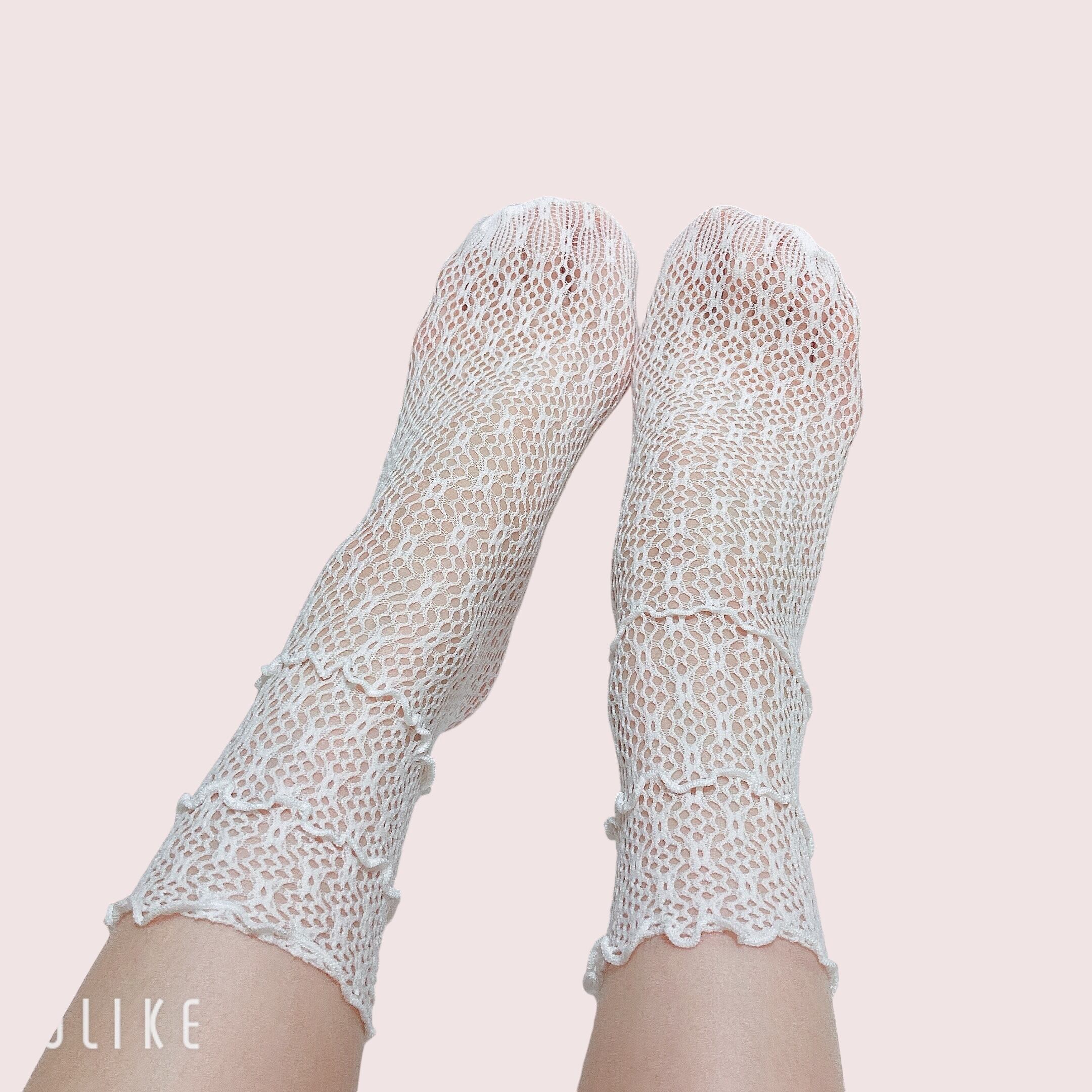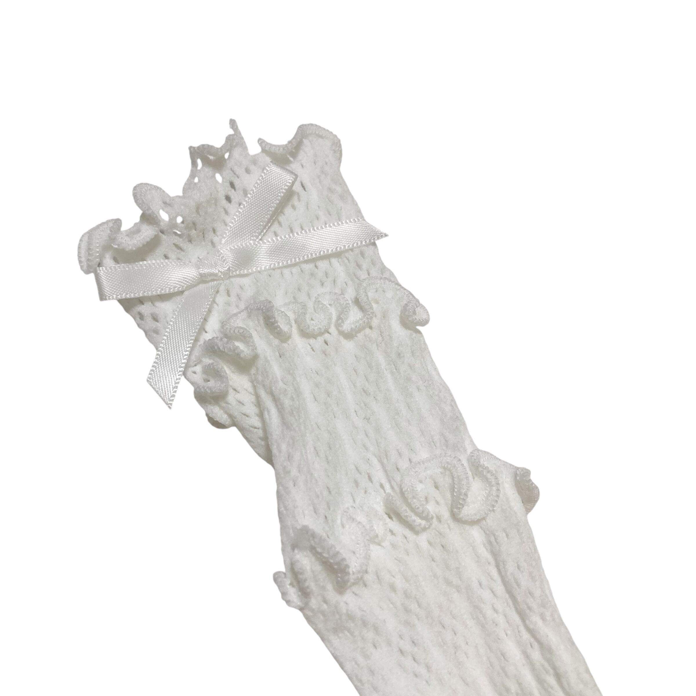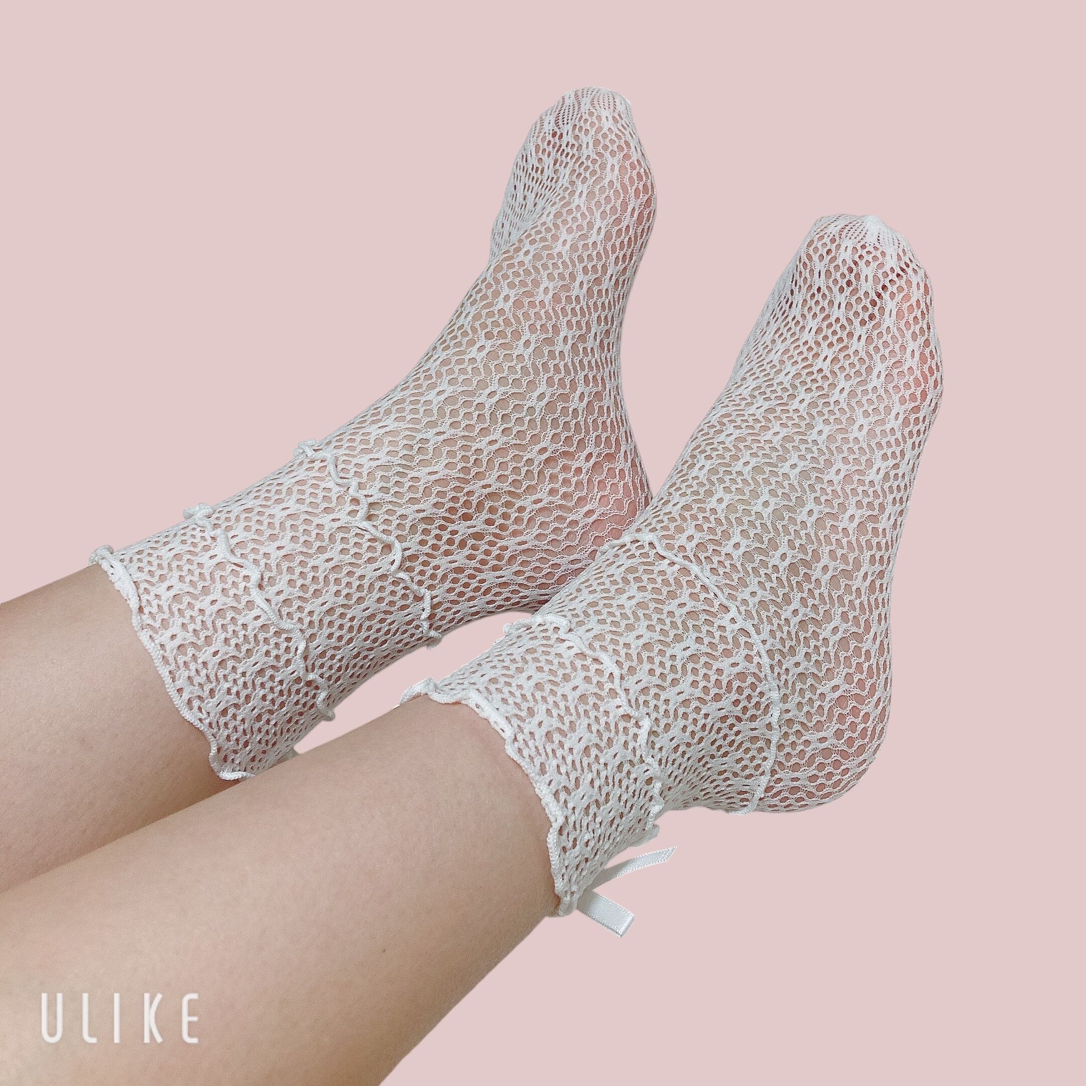 3段のメローとリボンが可愛いメッシュの靴下です!